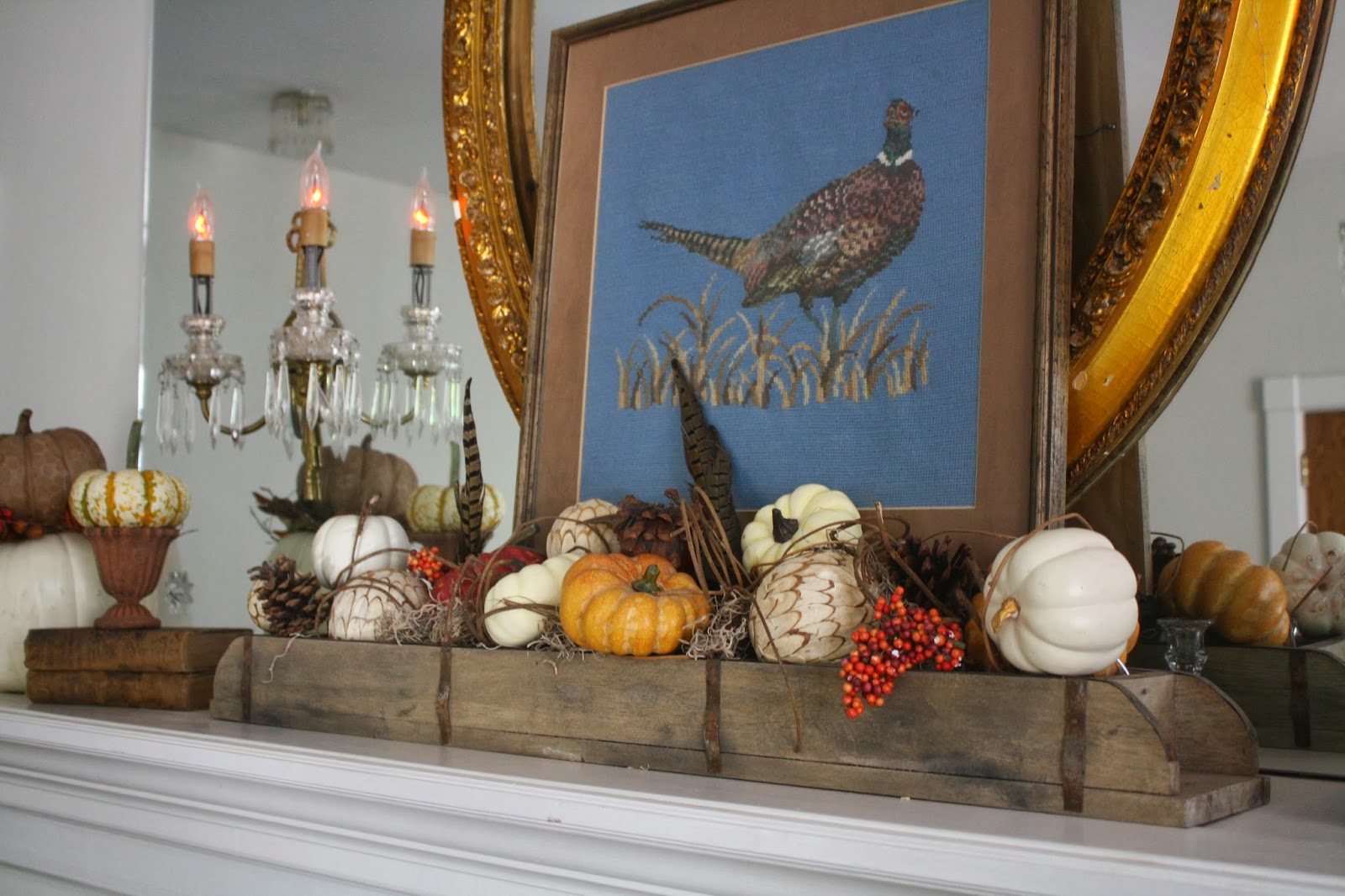 ReplyDeleteThat pheasant needlepoint is just the perfect addition to what might have been a beautiful (but traditional) autumn mantle...